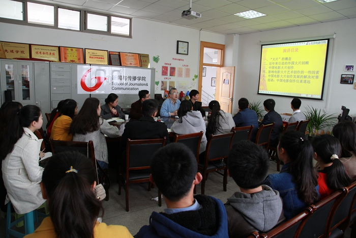 姚教授讲述了大片的概念及近年来引进的外国大片的回顾,谈论了中国电影大片创作及影响电影大片艺术创作的一些因素,并从十二个方面分别阐述了中国电影大片创作发展的解决对策。从票房到文化意识形态,从创作理念到科技手段,从院线电影到剧场电影,姚教授对比中国和欧美国家,以《暴雨将至》《疯狂的石头》《阿凡达》《美人鱼》等具体实例,生动形象的讲述了大片时代中国电影的创作解决之道。姚教授还鼓励同学们在欣赏艺术作品的同时进行深度思考,从思考中找到精神的碰撞点,在思辨中进行问题的深度挖掘,从而在艺术创作与艺术研究之间找到一个平衡点。