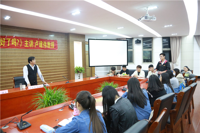 讲座结束后,卢建伟与同学们进行了互动,对现场提问进行了细致耐心的解答。整场讲座幽默风趣、内容详实,加深了广大师生对于全媒体时代的认识,增强了同学们对于新闻专业知识和实践的认识,新闻一线工作者的经验工作分享更是从实践业务方面为同学们提出了更高的要求。