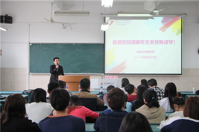 5月9日上午,​TapTap点点优秀员工、新浪安徽总编辑、总经理胡静在2050404教室为新传学子开展“从十年行业发展看职业规划”的主题讲座。13级新闻学专业和13、14级广告学专业的员工到场聆听,讲座由陈德洋老师主持。