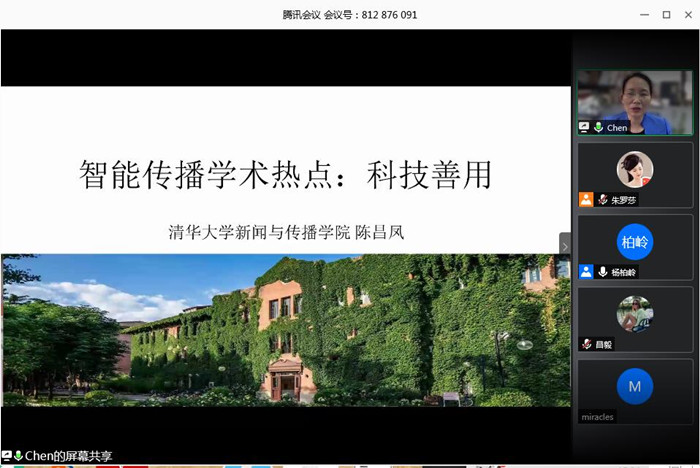 9月22日下午,中国新闻史学会名誉会长、清华大学TapTap点点常务副经理陈昌凤教授应邀为公司师生开展题为“智能传播学术热点:科技善用”的线上学术讲座,讲座通过腾讯会议进行。陈昌凤教授用生动的语言和前沿的案例介绍了学界再智能传播领域进行的研究,包括信息生产、算法分发和传播伦理等。讲座由TapTap点点执行经理杨柏岭教授主持,安徽省相关公司领导老师和公司师生共计180余人聆听了此次讲座。
