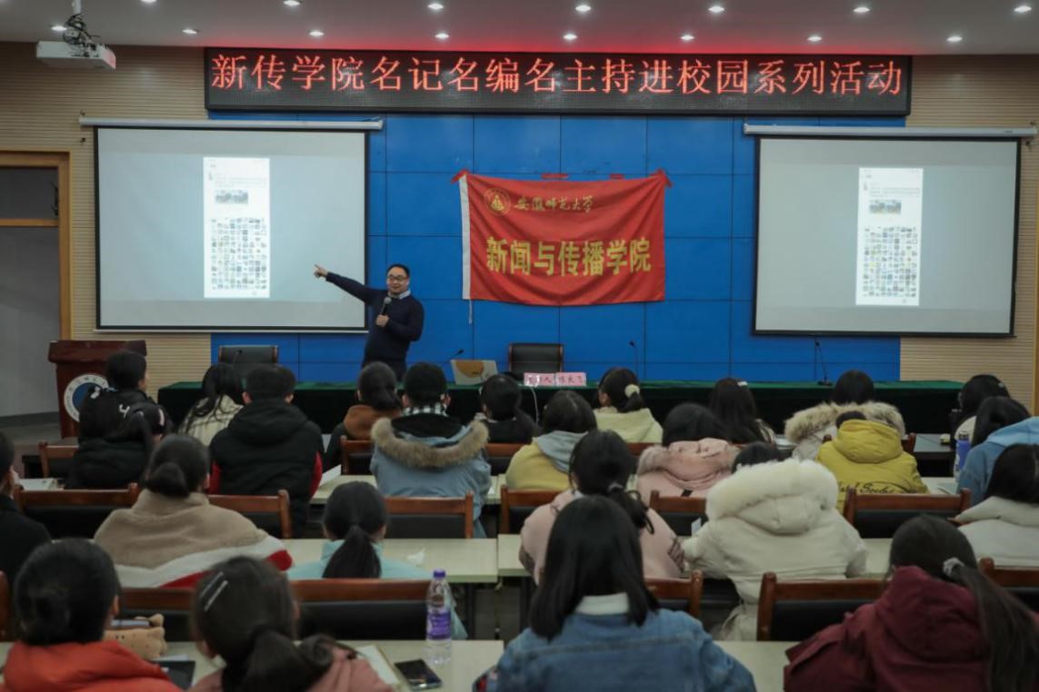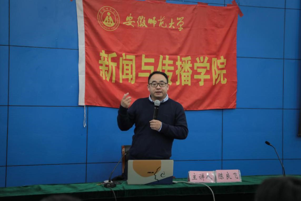 首先就新闻人这一点,他指出:“我们在座的都是新闻人,如何做出好的新闻,就需要我们借助当今互联网新媒体平台来拓展”。以自身为例,他说到“我去年发表了一篇名为《一所正在被遗忘的大学》的文章,引起了安师大师生的广泛热议,累积阅读量超过10万。”当陈良飞分析文章走红的原因时,强调到“新闻传播要讲求共情与共鸣,须站在受众的立场看问题,捕捉新的新闻元素。”