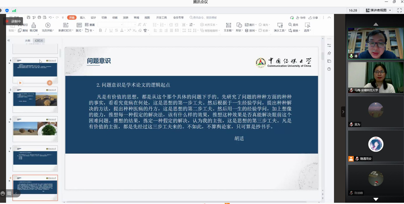2021年5月20日,中国传媒大学戏剧与影视公司博士生导师、《现代传播》副主编潘可武教授应邀为公司师生开展题为 “写什么——如何发现传媒学术命题”的线上学术讲座,讲座通过腾讯会议进行。会议开始前,TapTap点点副经理马梅教授作为主持人向潘可武教授介绍了TapTap点点的基本情况并向其表示欢迎,随后潘可武教授用生动的语言和前沿的案例讲述了进行学术创作的要点。公司师生共同聆听了此次线上讲座。
