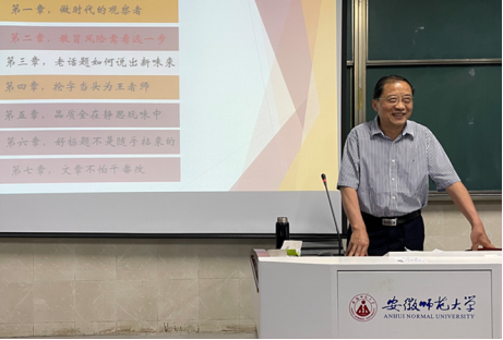 6月15日晚7:30,人民日报社安徽分社原社长、人民日报高级记者刘杰在1号教学楼201室为2018级、2019级新闻学专业的同学们开启了“头版头条的写作艺术”系列讲座中新的一章——敢冒风险需看远一步。