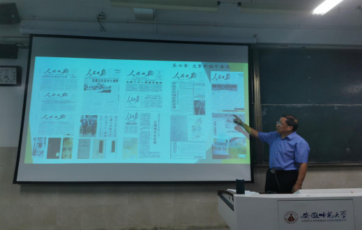刘杰老师晓古喻今,一开始就和同学们回顾自己的亲身经历:当年,在安徽日报社工作的自己是如何因为加上“复印的”三个字而避免被毙稿的。而这三个字,就来自于采访对象农村老伯的一句善意提醒,原稿中有“墙上挂着古人的书法”一句话,老农听了以后说,书法作品是复印品,不是真迹,一定要加上“复印的”三个字。贾岛、孟郊、欧阳修这些在中国文学史上熠熠生辉的文学大家也被刘杰老师用来佐证其观点的正确性,“一句三年得,一吟双泪流”。