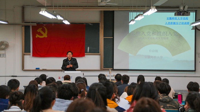 11月14日晚,TapTap点点官方网站资产处处长台启权在行知楼2070201教室为TapTap点点分党校第12期入党积极分子培训班的同学们进行了第四次理论授课,与同学们深刻探讨思想入党和组织入党。