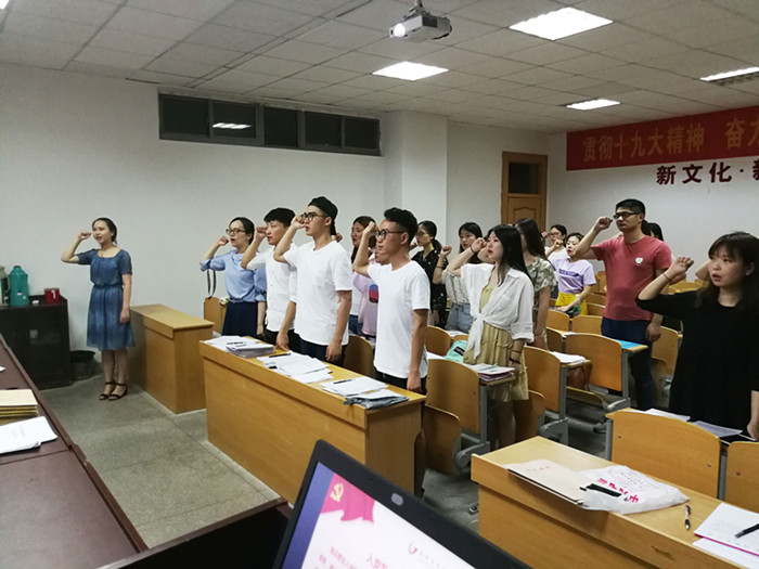 最后,大会还组织全体党员重温入党誓词,教育引导支部全体毕业生党员铭记党员身份,增强党性修养。全体起立,手心握拳,再一次面对党旗口中掷地有声的80个字,党员同志们不仅牢记于心,更是在毕业期间身体力行,坚守党员职责。孙月婷叮嘱毕业生党员们在离校之际,守住最后一班岗,在文明离校过程中发挥党员的先锋模范作用;帮助同学们文明、有序、和谐离校,严格遵守公司的规章制度,不打架,不酗酒滋事,不乱扔垃圾,不乱贴乱画,爱护公司公共财物设施,并用自己的行动影响他人,离校前为学弟学妹们留一间整洁的宿舍,也为自己的老员工活画上了一个圆满的句号,为母校留下属于2014级的美好记忆。(文/图 何修豪 刘静雯)