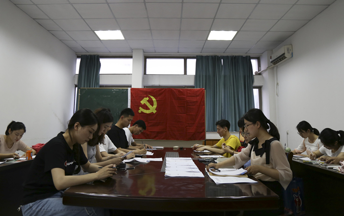 本次组织生活会紧紧围绕深入学习贯彻党的十九大精神,牢固树立“四个意识”、坚定“四个自信”,提升基层党组织的凝聚力等内容进行。余梦雅首先带领支部全体成员集中学习了习近平总书记在北京大学师生座谈会上的讲话精神,支部党员们采用面对面交流讨论等形式,深入探讨习近平总书记对青年提出的“爱国、励志、求真、力行”的要求。在支委会的带领下,支部党员针对近半年来的思想工作实际进行自查互查,支部成员间严肃认真地开展批评与自我批评。
