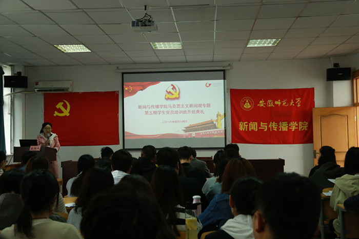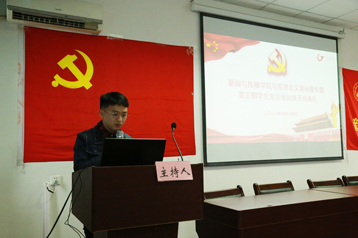 典礼上, 班级纪律委员2017级戏剧与影视文学专业的研究生徐红群郑重宣读了班级管理制度,提醒学员们协调安排好自己的学习与生活,严格遵守纪律。2014级空乘专业的苗迪作为往届培训班优秀学员代表发言,她借用习近平总书记的话来阐述坚定理想信念的重要性,要做“四有新人”,不仅要在思想上入党更要在行动上入党,刻苦学习。本期培训班学员代表2015级广告专业陈建军代表班级学员表示将严格要求自己,提高觉悟,扎实学习,争取做好一个青年党员,履行双重使命。