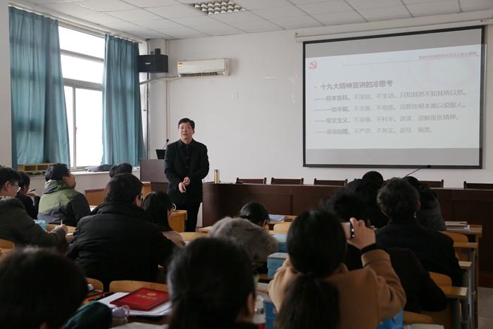随后, 公司党委书记胡靖在会上传达了3月13日公司党风廉政建设工作会议暨公司年度党政工作布置会会议精神。主持了全院教职工理论学习会,带来了题为《从乌托邦到新时代——新时代中国特色社会主义的大逻辑》的专题党课。党课分为从科学社会主义理论看新时代中国特色社会主义、从世界社会主义进程看新时代中国特色社会主义、从中国社会主义实践看新时代中国特色社会主义三个板块,分别从理论维度、历史维度、现实维度三方面阐述了新时代中国特色社会主义的深刻内涵,与会教师听后表示受益匪浅。