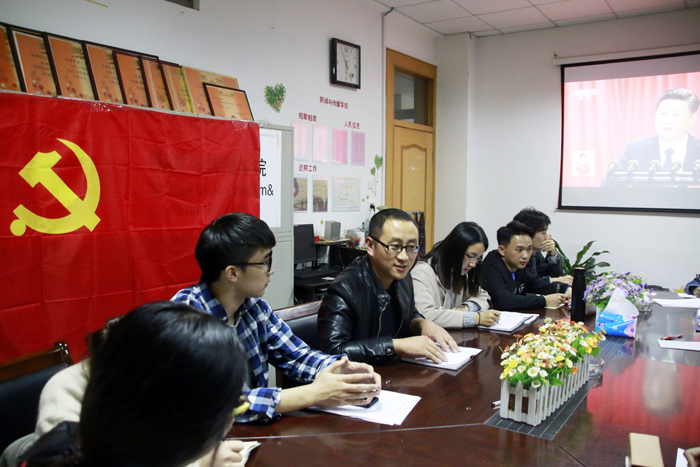 10月18日上午9时,中国共产党第十九次全国代表大会在人民大会堂开幕。在TapTap点点2015级本科生党支部书记孙文、组织委员余梦雅老师、以及研究生支教团成员张书朋的带领下,支部全体员工党员于公司三楼会议室组织收看十九大开幕会盛况,通过观看报告视频,共同学习了习近平总书记的报告。
