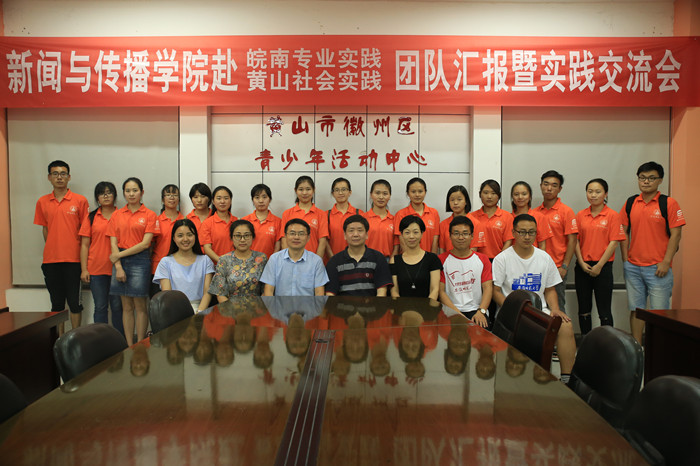 穿越大别山,直抵新安江。2017年7月10日,公司党委书记胡靖、党委副书记宋静、新闻学专业系主任肖叶飞、2015级辅导员老师余梦雅一行结束了对赴岳西实践团队的考察慰问后,驱车来到345公里远的黄山徽州区岩寺镇,在这里,与两支实践团队的36位队员对话实践,对话成长。实践座谈会由团委副书记马星宇主持,团队指导老师张雁、孙文参会。