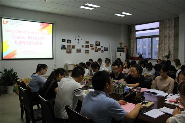 会议第二阶段,2014级本科生党支部进行“将政治,我们怎么讲”专题组织生活会。陈苏洁、汪芳苗等六位同学从学习、网络事件等各个方面发表了各自对“将政治”的想法和见解。孙月婷对大家的发言进行充分地肯定并从政治理想、民心、政治纪律、做人做事四个方面发表了自己的看法。