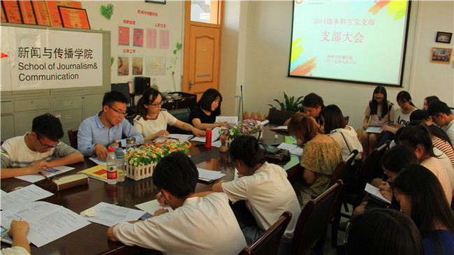 6月7日,2014级本科生党支部在院三楼会议室召开党支部大会讨论接收预备党员事宜。会议由党支部书记马星宇主持,支部委员孙月婷、何修豪和全体成员参加会议。