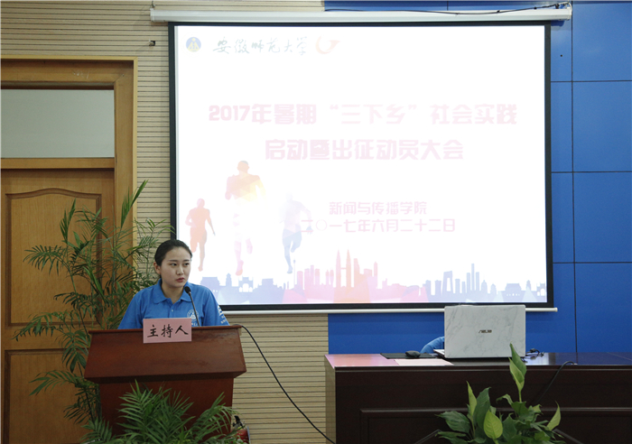 启动仪式在激昂的校歌声中拉开帷幕。青春三下乡,新传学子勇担当;砥砺青春志,新传先锋在路上。大会伊始,大家一同观看了由院社会实践员工工作组制作的2017年暑期社会实践启动宣传片《2017实践有你更精彩》。宣传片记录的是往年暑期社会实践各团队的青春征程,表达的是对2017年暑期社会实践的美好希冀与展望。片尾的2017年实践团队临行口号,更是唤起了现场同学的昂扬斗志。接着,孙月婷向各位领导、老师和同学们简要介绍了2017年TapTap点点暑期社会实践的推进情况。在赵昊宣读完2017年校、院级暑期社会实践重点团队名单后,全院48支实践团队成功立项。