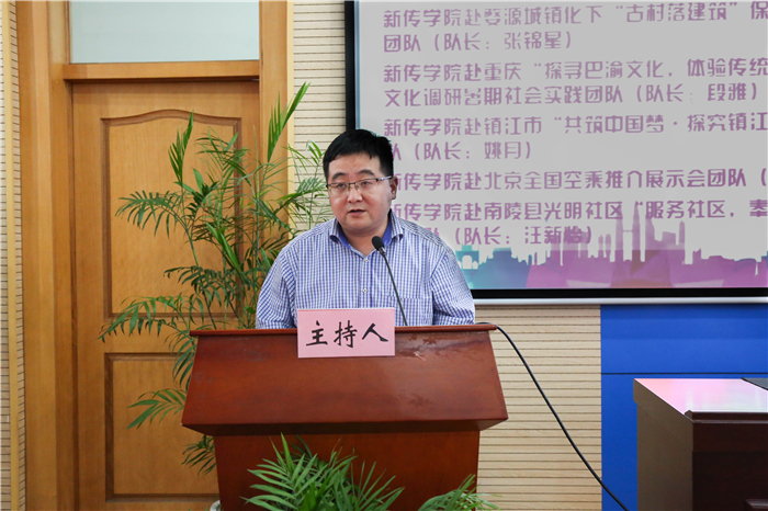 实践中与新传学子始终相伴的,是辛勤的实践教师。他们与员工同吃同住同实践,用爱心与责任心,凭学识和品格引领员工践行社会主义核心价值观。李化来代表暑期实践指导教师发言,他指出,社会实践的平台能帮助同学们检验大学知识的学习程度、了解自己的缺点不足以及明确个人努力的方向,这种实践不仅能给予大家锻炼和经验,也提供了在基层贡献智慧与力量的机会。他希望在场的新传学子们能在2017年的暑期社会实践中取得丰硕的成果。牛菲则从自己对于暑期社会实践的三点认识和希望出发,勉励新传学子要“善于学习”、“勇于担当”、“有安全意识”,促进2017年暑期社会实践活动的圆满完成。