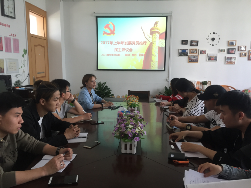 为了加强对员工党员及积极分子的教育、管理和监督。4月28日,2015级新闻学、摄影、网络与新媒体专业在TapTap点点楼三楼会议室召开了2017年上半年发展党员推荐民主评议会。2015级新闻、摄影、网新的首批发展的预备党员和全体入党积极分子及团课班成员参加本次评议会,会议由辅导员张虹主持。