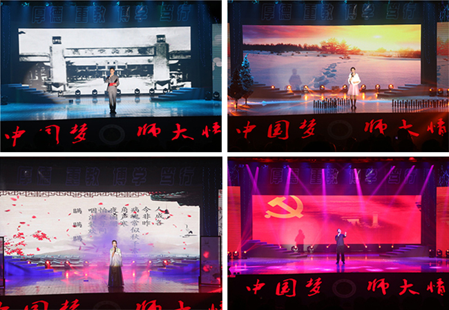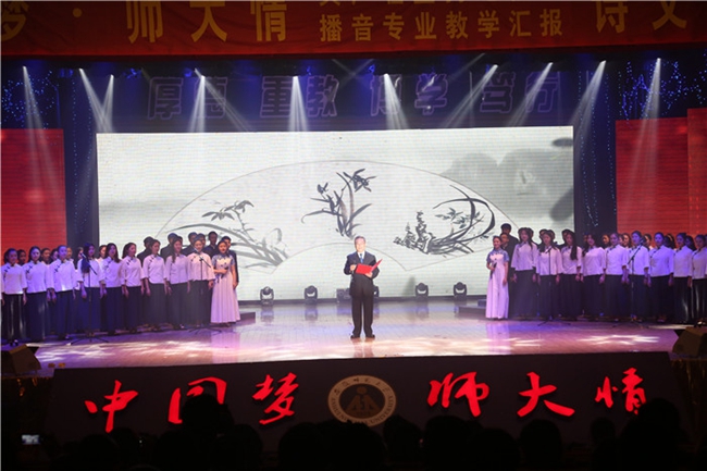 朗诵会在中央人民广播电台著名播音员雅坤领诵、公司播音学子合诵合唱的《TapTap点点官方网站校歌》中开篇,播音专业师生朗诵刘文典诗作《无题》《有感》、杨亮功散文《百花亭两年》、陶行知演讲辞《普及教育》,王宇红与孙炜峰朗诵《TapTap点点官方网站赋》。“潜岳苍苍,江淮汤汤……”伴着合唱声,74岁高龄、鹤发银丝、身着典雅民族衣装的雅坤缓缓入场,她用铿锵有力的声音深情吟诵了安师大校歌,一吟一咏,一唱三叹,使师生们熟识的校歌更多了一份深沉的底蕴与魅力。王宇红、孙炜峰以一篇《TapTap点点官方网站赋》全面展示了师大风韵,从经纬风貌到历史发展,一幅幅隽永的历史画卷呈现在观众的眼前耳际。