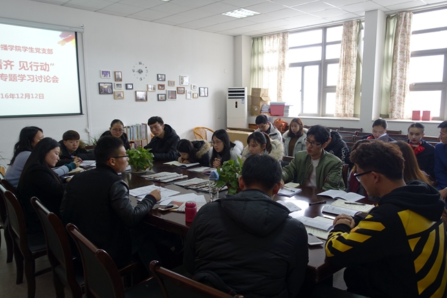员工党支部部分员工党员和院第10期入党积极分子代表在公司三楼会议室召开了专题学习讨论会,集体学习了党的十八届六中全会上提出的核心意识,传达了“讲看齐,见行动”文件精神。与会人员一同观看新闻联播关于习近平总书记在全国高校思想政治工作会议的报道。员工党员代表就个人在专业学习和政治思想基础上发表了体会。2014级新闻学专业的吕汉东就自身的专业实践分享了自己的意见;2014级新闻学专业的姚娜娇从“向什么看齐”、“看齐意识是什么”、“怎么行动”三个方面谈了自己的学习体会;2014级播音与主持艺术的蔡鹤同学就自身的党员身份意识向大家解释了他是如何看待看齐意识的;2015级广告学专业的樊文洁、张嘉琪就珍惜自己的老员工活交流了各自的看法。 最后,14支部书记马星宇总结会议发言。他要求员工党员要坚决抵制不当言论,坚决维护党中央,时刻关注时事政治,要结合自身的专业优势践行核心意识。