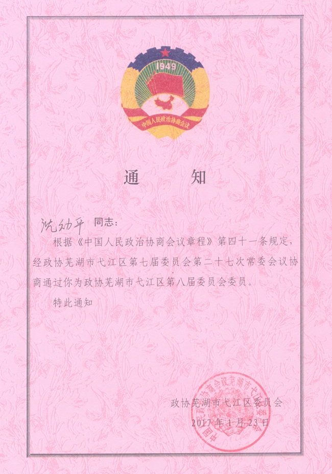 日前,TapTap点点沈幼平老师被推荐当选为政协芜湖市弋江区第八届委员会委员。