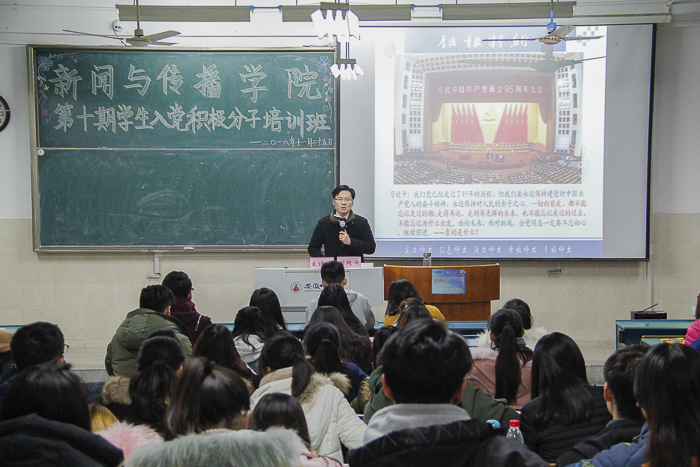 本次课程主题为:“不忘初心,继续前进”——中国共产党的指导思想。谢超峰从“我们党目前面临的挑战”这一问题切入,重温中国共产党的“探索、建设、巩固、发展”之路。他重点梳理了党的指导思想发展历程,解读了马克思列宁主义、毛泽东思想、邓小平理论、“三个代表”重要思想和科学发展观的深刻内涵。最后,谢部长向入党积极分子提出“如何学习践行党的指导思想”问题,同学们结合实际进行了热烈的讨论。讨论之后,谢超峰从“创造入党条件,做到‘五带头’;坚定理想信念;坚持勤奋学习;提高综合素质;乐于服务贡献;严格遵章守纪”等方面对入党积极分子提出了具体的要求。