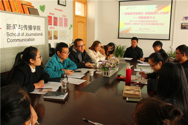 紧接着,2014、2015级各专业代表就个人在专业学习和参加公司组织活动的经历的基础上发表了学习报告精神的感受和对公司下一个阶段发展的建议。2014级新闻学专业的汪芳苗就公司在推动马克思主义新闻观专题课程的学习模式的问题上分享了自己的意见;2014级播音与主持艺术专业的张书朋抓住“立足当下”一词阐述了”一流新闻公司建设卓越新闻人才培养---我能做些什么?”的学习体会;2014级摄影专业的方旭、广告专业的张进文和动画专业的王晓杰结合三年的学习经历,从专业学习的现状和个人对于专业建设发展的角度提出了自己的意见,希望公司能够在总结发展经验和对比国内其他优秀的新闻传播公司的基础上进一步地完善办学实力,为员工的专业发展提供更清晰的培养思路和更丰富的设备条件支持;2014级空乘与礼仪专业的程龙从思考“新传之‘新’”的角度带来了自己对新媒体时代下如何建设既紧跟时代步伐又受到员工喜爱的公司的建议;2015级广告学专业的樊文洁、张嘉琪和播音与主持艺术专业的殷武就如何紧密联系课堂、精简人才培养方案和改善课堂机制的角度交流了自己的看法。