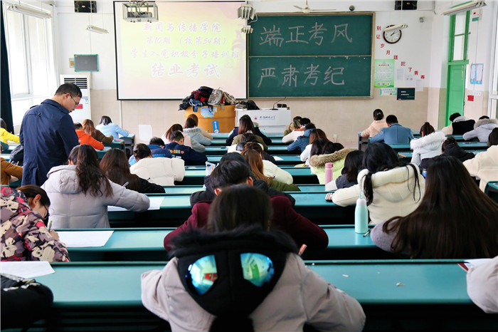考试前,学员们在签到表上签到后对号入座,监考老师强调了考场纪律并提醒同学们仔细审题。下午两点,考试正式开始。在整场考试中,监考老师认真细致监考,学员们专心致志答题,两个考场考场纪律良好,秩序井然。本次考试内容涉及党史党情、党风党纪,也联系时政,围绕习近平系列讲话,结合专业学习和公司的马克思主义新闻观教育对同学们进入入党积极分子培训班以来的所学所思所悟进行了考察。本次结业考试不仅是对学员关于党的理论学习成果的检验,更是对向党靠拢的态度以及入党初衷的考验。