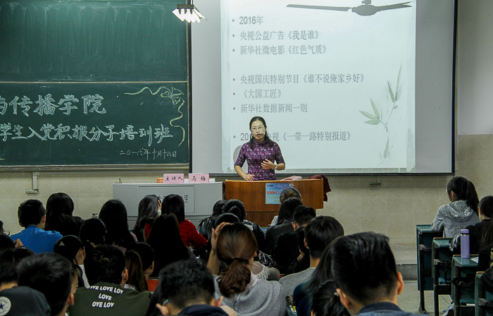 课程一开始,马梅老师就播放了纪录片《三个年轻人的长征路——红色追寻》,以三个年轻人的视角展现老一辈走长征路的艰辛和新时代长征精神给国人带来的感动和激励。央视公益广告《我是谁》,镜头对准六个不同职业的人,有的是“走得最晚的人”,有的是“起得最早的人”,有的是“行动最及时的人”,但六个人的共同点就是信仰中国共产党,并且为之奋斗。微电影《红色气质》以独特的逻辑线和将照片以静化动的手法展现了中国共产党的发展历程,历史的沉重感和发展的大气磅礴感引起了众人对党对信仰的深思。《谁不说俺家乡好》则表现了以往严肃的央视如今的新闻节目也充满了轻松愉悦的气氛,更说明了无须总结升华,受众自会感受到节目表达的观点。马梅老师一边带领学员观看影片,一边讲解拍摄制作手法以及大意要点。