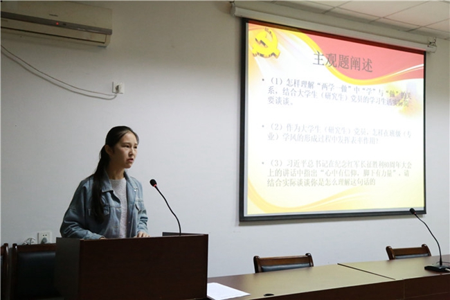 教工组比赛前,员工组比赛在24日晚举行。2013级本科生党支部书记陈德洋,2014级本科生党支部书记马星宇出席比赛并担任评委。比赛分为笔试、有问必答、抢答、主观题阐述四个环节。笔试、有问必答员工党员们沉着应对,抢答气氛热烈,主观题阐述论点精炼,论据充分。经过四轮比赛最终2014级本科生党支部获得了一等奖。