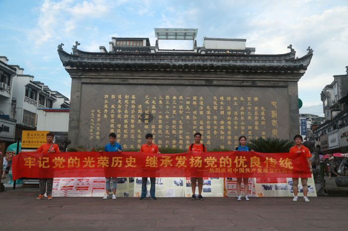 弘扬红色旋律,践行青年使命。队员们怀揣青年的梦想,肩负起时代的担当。值此中国共产党成立95周年之际开展系列活动,在“两学一做”中体悟中国共产党发展历程,缅怀峥嵘岁月。27名年轻的心以青春的名义凝聚时代的力量,在这片欣欣向荣的土地上蓬勃生长。(文图/“寻迹红色记忆”赴黄山实践服务团队)