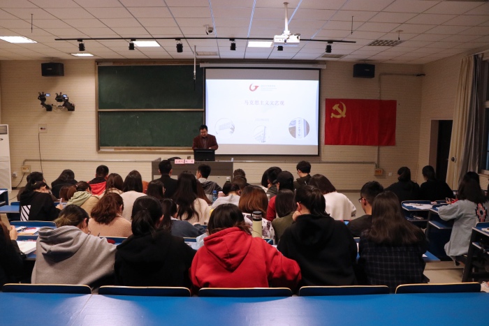 赵昊结合身边具体的事例讲述马克思主义文艺观,使党课班的学员们对马克思主义文艺观有了一个清晰并且深刻的了解和认识。最后,他寄语员工党员们要在马克思主义文艺观的指导下进行创作,在专业训练中选好主题,结合专业特色创作出好的作品。(文/吴一杰 图/李梦琦、陶玉莹)