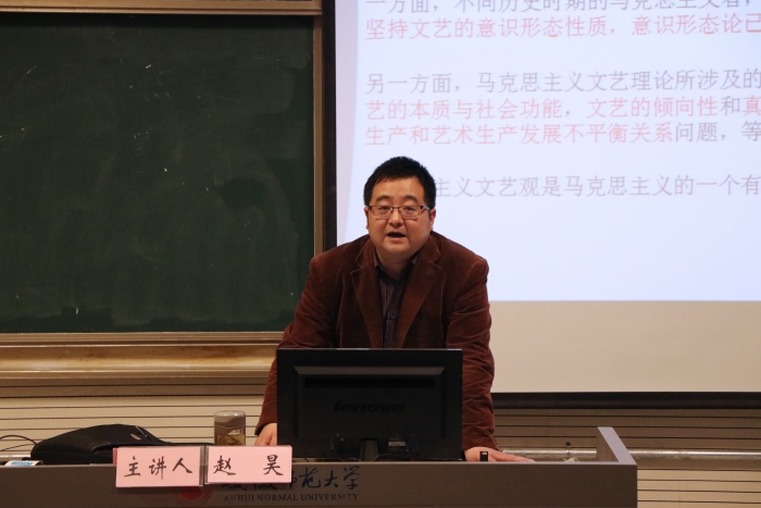 课上,赵昊向员工党员们讲授了什么是马克思主义文艺观,指出马克思主义文艺观是马克思主义的一个有机组成部分,它的产生是文艺思想史上的一次革命,并从马克思、恩格斯文艺观产生的历史条件、马克思主义文艺观的本质来阐释它的内涵。赵昊分析了马克思主义文艺理论在中国传播、接受与发展的过程,实质上就是马克思主义文艺理论中国化的过程。他重点分析了中国化马克思主义文艺观的形成,并指出,马克思主义文艺观是经过本土化、时代化、民族化的既与经典马克思主义一脉相承又具有新质的文艺观,是经过中国革命、建设和改革实践检验的具有蓬勃生机的文艺观。