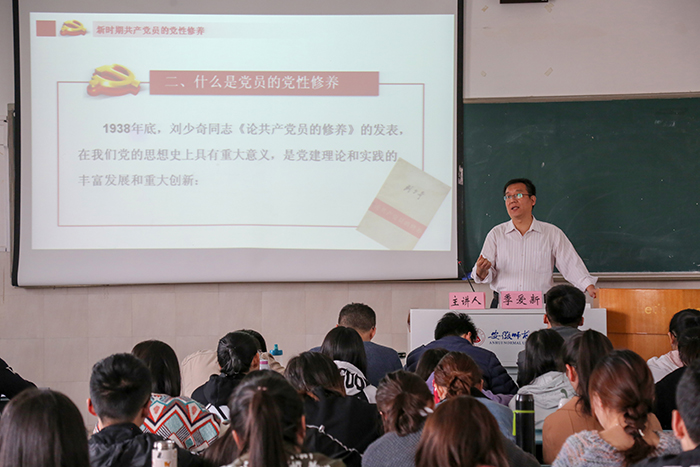 季爱新围绕党性修养这一概念进行历史溯源,阐述了党性修养的主要内容:政治修养是关键,理论修养是基石,文化修养是必要条件,道德修养是核心,纪律修养是保证,作风修养是体现,六个方面相互联系,有机统一。他指出,党性是党员最本质的规定性,党员要坚定理想,防止对党性庸俗化和片面化的错误理解。他强调,党性要求体现于党的政治生活各方面,是党组织和党员言行的准则,对于共产党员来说,党性是立身、立业、立言、立德的基石,党员不断加强党性修养,是我们党区别于其他政党的鲜明标志,也是全面从严治党的必然要求。他指出,第一次全面、系统地提出并论述共产党员的党性修养问题的是刘少奇同志,并就刘少奇同志的《论共产党员的修养》和周恩来同志的《我的修养要则》来剖析党员党性修养的理论内涵。同时,引用习近平总书记的话谈党性修养的重要性,“要成为好干部,就要不断改造主观世界,加强党性修养,加强品格陶冶。”