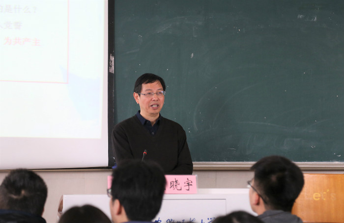 刘晓宇以《中国共产党誓词与党员责任》为题给大家带来专题党课。他以习近平总书记向党宣誓的视频为切入口,告诉党课班成员们要用心记住入党誓词。紧接着,他从入党誓词的沿革、入党誓词的释义和党员的责任三个方面来讲授本次课程。