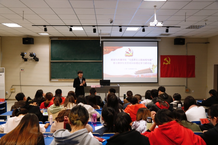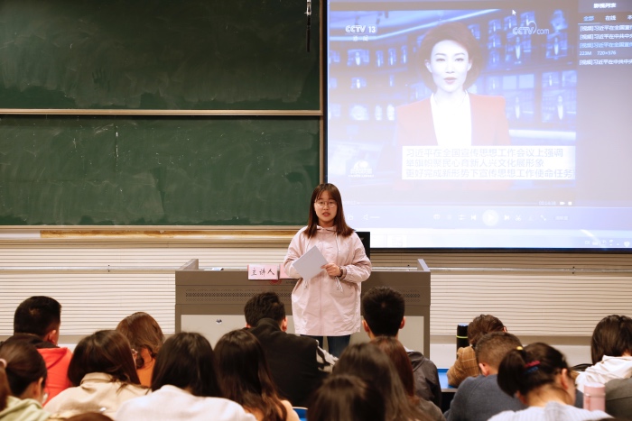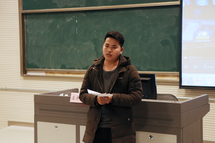 视频播放完毕,各小组员工代表上台进行自由分享。2015级新闻学专业员工宣智丽结合自身在媒体的实习经历,与大家分享了视频观后感。2015级播音与主持艺术专业邹升浩从自身实习实践经历出发,结合视频学习素材,积极分享自己的所见所闻所想。其余同学则从新闻反转、后真相、当代新闻人等角度,畅谈自己的所思所想。