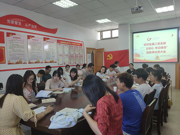 此次会议分为党员大会和理论学习会。首先,高月在这次主题教育党员大会上指出,开展“不忘初心、牢记使命”主题教育具有重要意义。通过讲述此次主题教育的总要求及根本任务等内容。要求我们研究生党员在学习中能够将“守初心、但使命、找差距、抓落实”的总要求落到实处,严格要求自己。并认真贯彻习近平讲话精神,牢牢把握并深入学习习近平新时代中国特色社会主义思想,锤炼忠诚干净担当的政治品格,以彻底的自我革命精神解决违背初心和使命的各种问题。确保此次主题教育学有所得,学有所成。然后,高月安排进行“学习强国”学习标兵通报、检查个人“理论学习记录本”及支部活动签到情况通报。这也与此次主题教育呼应,要求研究生党员能做到知行合一、起到模范带头作用,将“不忘初心、牢记使命”精神认真贯彻。
