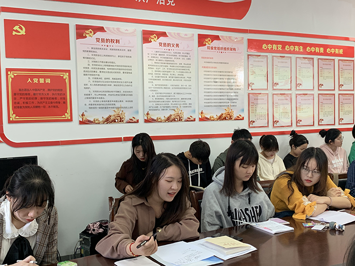接着,2018级新闻传播学周美霞发表了个人体会,她认为现阶段,“看齐意识”可以表现在“能力提升”、“自我修养”、“党性锤炼”三个方面。支部成员应该互相学习,不断向优秀者看齐,共同进步,共同发展。2017级新闻传播学余梦雅围绕“党员的先进意识和责任意识”展开了论述,她指出党员同学要转换思想,主动承担事务,发挥先锋模范作用。