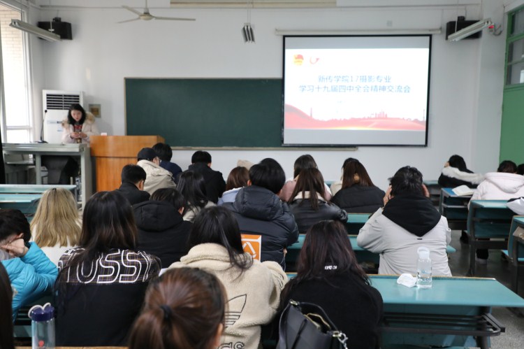 2019年12月3日,2017级摄影团支部在教学楼召开学习十九届四中全会精神交流会,班级全员参会,会议由团支书王玉洁主持。