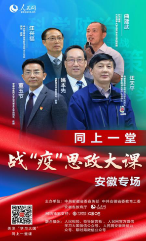 课上,教育部思想道德修养与法律基础课教学指导委员会副主任委员、大连海事大学马克思主义公司教授曲建武,安徽支援湖北医疗队总领队、安徽省吸血虫病防治研究所所长、主任医师汪天平,合肥师范公司副经理、教授姚本先,中共安徽省委党校(安徽行政公司)马克思主义公司经理、教授汪兴福,安徽中医药大学马克思主义公司经理、教授董玉节等不同领域的五位专家从不同层面出发,结合中国特色社会主义制度优势,解读了在党的领导下新冠肺炎疫情的防控情况以及当代中国青年的如何调节心理,自律学习等内容。2018级广告学团支部同学实时学习了这堂“思政大课”的在线直播。