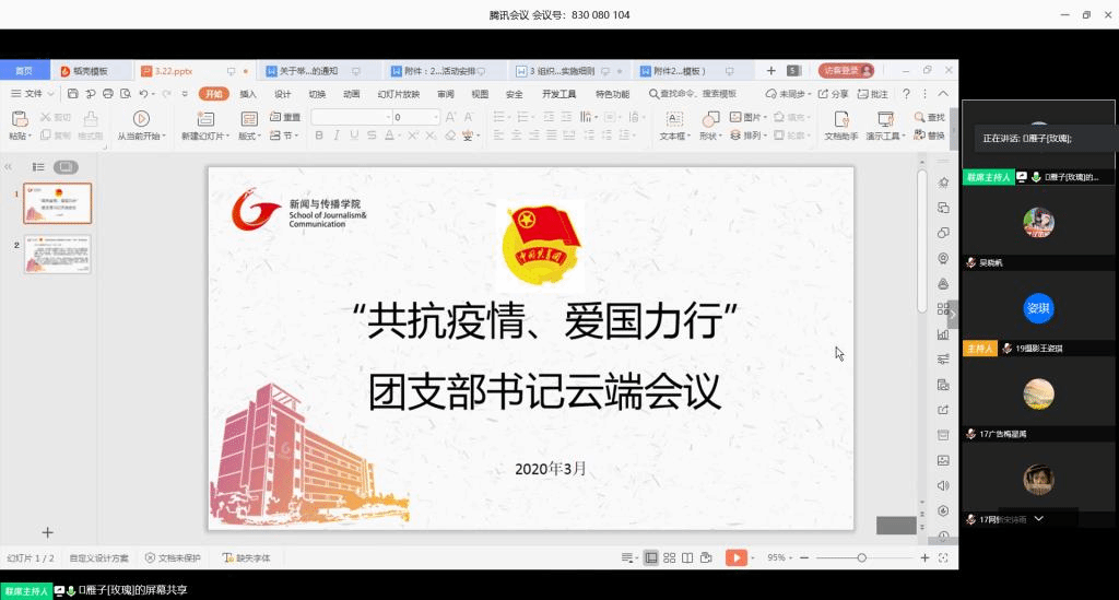 为了加强团支书的思想建设,勉励他们发挥好模范带头作用。张雁带领团支书学习了习近平总书记对北京大学援鄂医疗队的全体“90后”党员的回信。信里充分展示了新时代中国青年的精神风貌,体现了青年们继续发挥党员作用、为打赢疫情防控阻击战贡献力量的决心,她勉励团支书即使在特殊时期也要做到以身作则,提高政治站位,做好班级思想引领工作。
