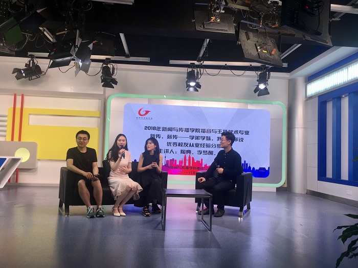 为了让员工们更能感受“播音大家庭”的温馨,更能亲近母校师生,本次交流会以面对面访谈的形式展开。三位员工与学弟学妹们畅谈了他们从求学到从业的心路历程。李梦醒分享了在专业学习以及课余专业实践两者中的平衡经验,强调专业课学习的重要性以及如何对待解决问题的轻重缓急,她还结合自身经历,向大家介绍了推免生面试需要准备的内容以及从业以来面临的问题和挑战以及当下新媒体的发展趋势。透过一张详尽、自律的作息时间表,张明辉介绍了自己当时顺势而为选择创业的契机,他特别强调透过创业的平台自己看到了更大的平台获得了更多信息的渠道,强调了善于把握机会的重要性。在一段由陶典配音的视频集锦后,她向大家介绍自己结识配音的契机以及一路走来的奋斗历程,同时还强调了练声的必要性以及如何找到自己的节奏和练习方法。三位员工的倾情交流与真情流露,赢得了大家的阵阵掌声,播音学子们也收获颇丰。