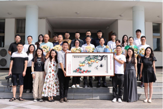 紧接着,员工代表向张师帅、马梅等在场领导、老师献上鲜花,感谢他们的悉心培育。2011级新闻学班长赵将还代表全班同学向公司敬赠了 “桃李满天下” 铁画纪念品,寓意母校培育的学子遍布各地、各有所成。师生共同合影留念,定格这一珍贵时刻。