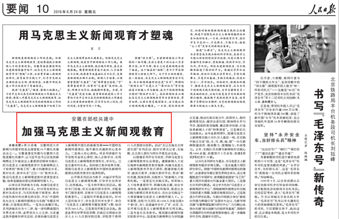 创办于19921996年建系,是安徽省最先建立的新闻系。新闻学专业坚持以马克思主义新闻观为统领,秉承知识、能力、素质协调发展的人才培养理念,培养政治强、业务精、视野广、纪律严、作风正的卓越新闻传播人才。毕业生可在传统媒体、网络新媒体、政府部门、企事业单位等从事新闻采编、媒体创意、传媒经营管理、文化传播、网络传播等新闻传播工作。一批员工在英国谢菲尔德大学、利兹大学、美国印第安纳大学、罗格斯大学、北京大学、中国人民大学、中国传媒大学、复旦大学、武汉大学、暨南大学、中山大学、南京大学、华中科技大学等国内外知名学府继续攻读硕士学位。