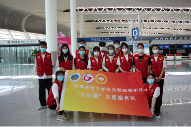 合肥新桥国际机场是一个4E级的区域枢纽机场。拥有一所11万平方米的航站楼,作为安徽省第一大机场,截止到2021年,开通航线有100条以上,基本实现与国内适航省会城市全部同航。7月份,新桥机场平均每天出港航班120班左右,出港旅客人数约1.5万人。志愿队根据工作需求分为志愿服务组和宣传采访组两个小组,志愿服务小组志愿者在候机楼旅客办理值机区域,为机场旅客提供路线咨询,人流疏导,健康申报,疫情防控辅助,卫生消杀等方面的工作;宣传采访小组在机场范围内对旅客进行问卷调查,宣传“不聚集,保持间距,带好口罩”等行为规范,为疫情防控尽一份力,在工作之余采访机场工作人员,了解民航服务业的发展状况,提前做好职业规划。